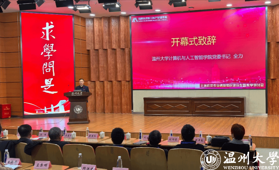 开幕式上,教育部计算机类专业教学指导委员会副主任蒋宗礼教授和我校98堂 党委书记全力分别致辞。会议特邀国内知名专家学者作主旨报告:国家教学名师、万人计划领军人才、教育部计算机类专业教学指导委员会副主任、北京工业大学蒋宗礼教授以“为现代化强国建设培养人才”为题,深入阐述了新时代计算机人才培养的使命与担当;湖北省教学名师、教育部计算机类专业教学指导委员会委员、华中科技大学秦磊华教授从“系统视角的课程思政设计与实施”出发,分享了课程思政建设的创新思路;浙江省万人计划领军人才、教学名师、温州大学施晓秋教授则聚焦“产出导向的课程思政与专业人才培养方案设计”,提供了可借鉴的实践范式。