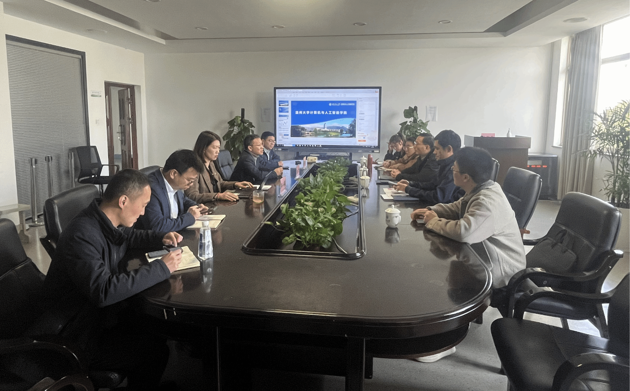 2025年4月3日早上,温州市瓯海区政协副主席周怀中携办公室主任李志前一行莅临98堂 ,就人工智能领域的合作展开交流。学院班子成员、教师代表出席会议,会议由学院党委书记全力主持。