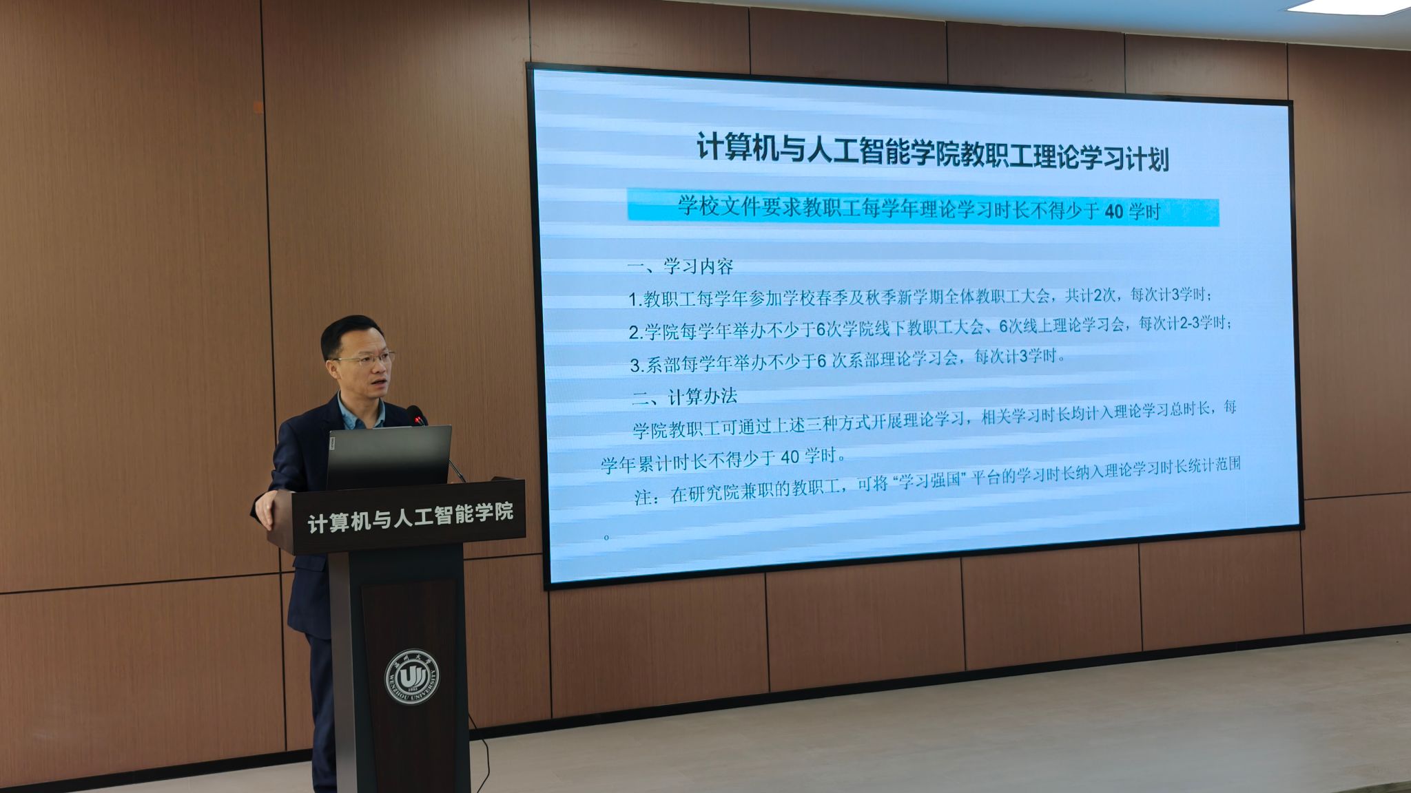 会议伊始,党委书记全力系统阐述了加强师德师风建设和作风建设的重要性,要求全体教职工深入贯彻落实中央八项规定精神,切实筑牢纪律防线,同时强调要严格遵守教育与宗教相分离原则,严禁在校园内开展任何形式的宗教活动。全力书记重点解读了《温州大学校园交通安全综合管控方案》,通过剖析校内超速行驶等典型案例,强调遵守校园交通规则的必要性。此外,他还就保密工作、国家安全教育等专项任务作出具体安排,并对本年度教职工理论学习计划进行了全面说明。