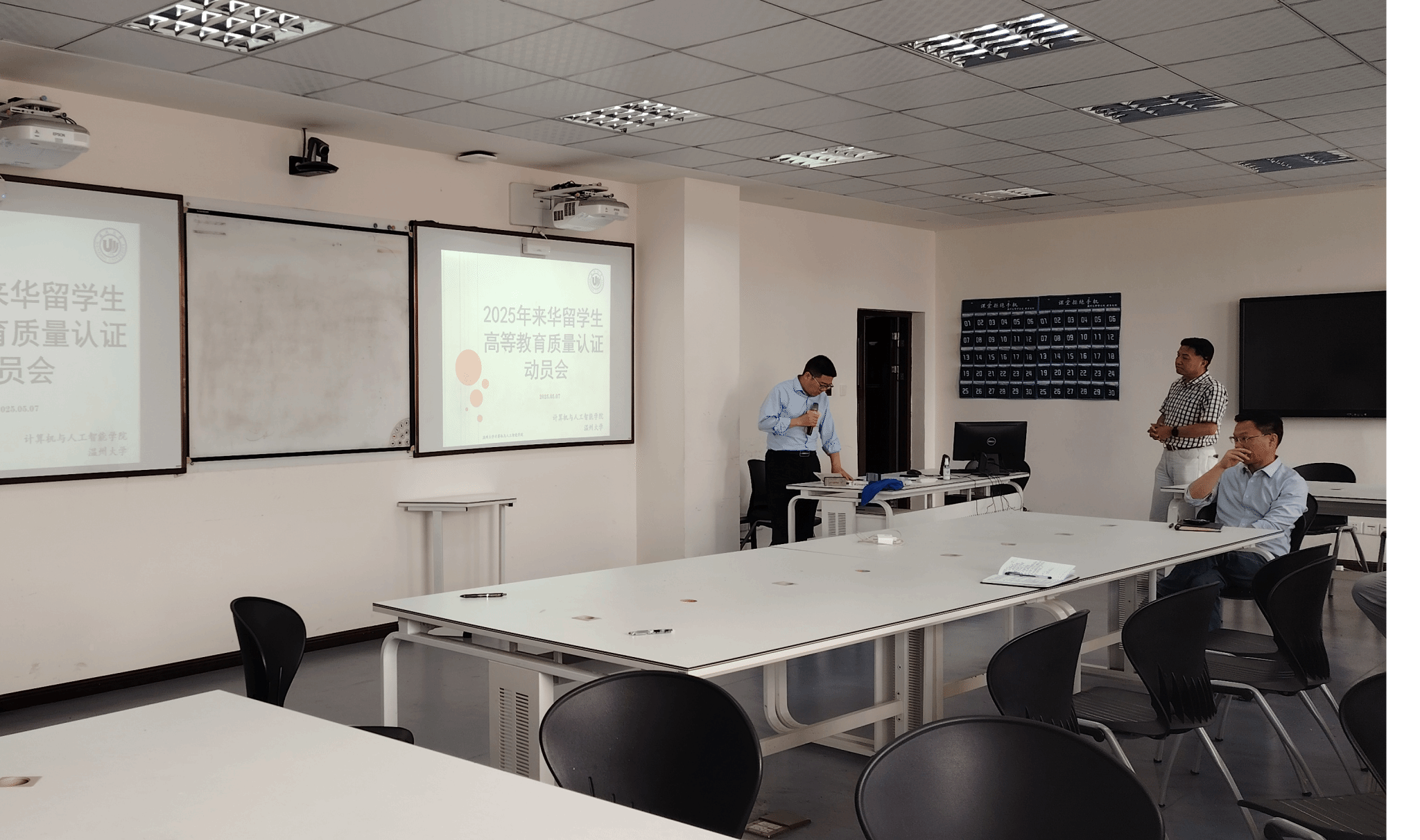 留学生专业主任陈恒教授结合《来华留学质量认证标准》,逐条解读核心指标与考察重点,指出在“教学过程管理”方面,应做好专家随机听课准备,确保课堂教学质量“零瑕疵”;强调组织模拟专家访谈的必要性,制定突发事件应对预案;系统分析2025级计算机学院留学生新版培养方案的优化方向。与会教师聚焦认证难点展开头脑风暴,集思广益,共谋良策,现场讨论气氛热烈。