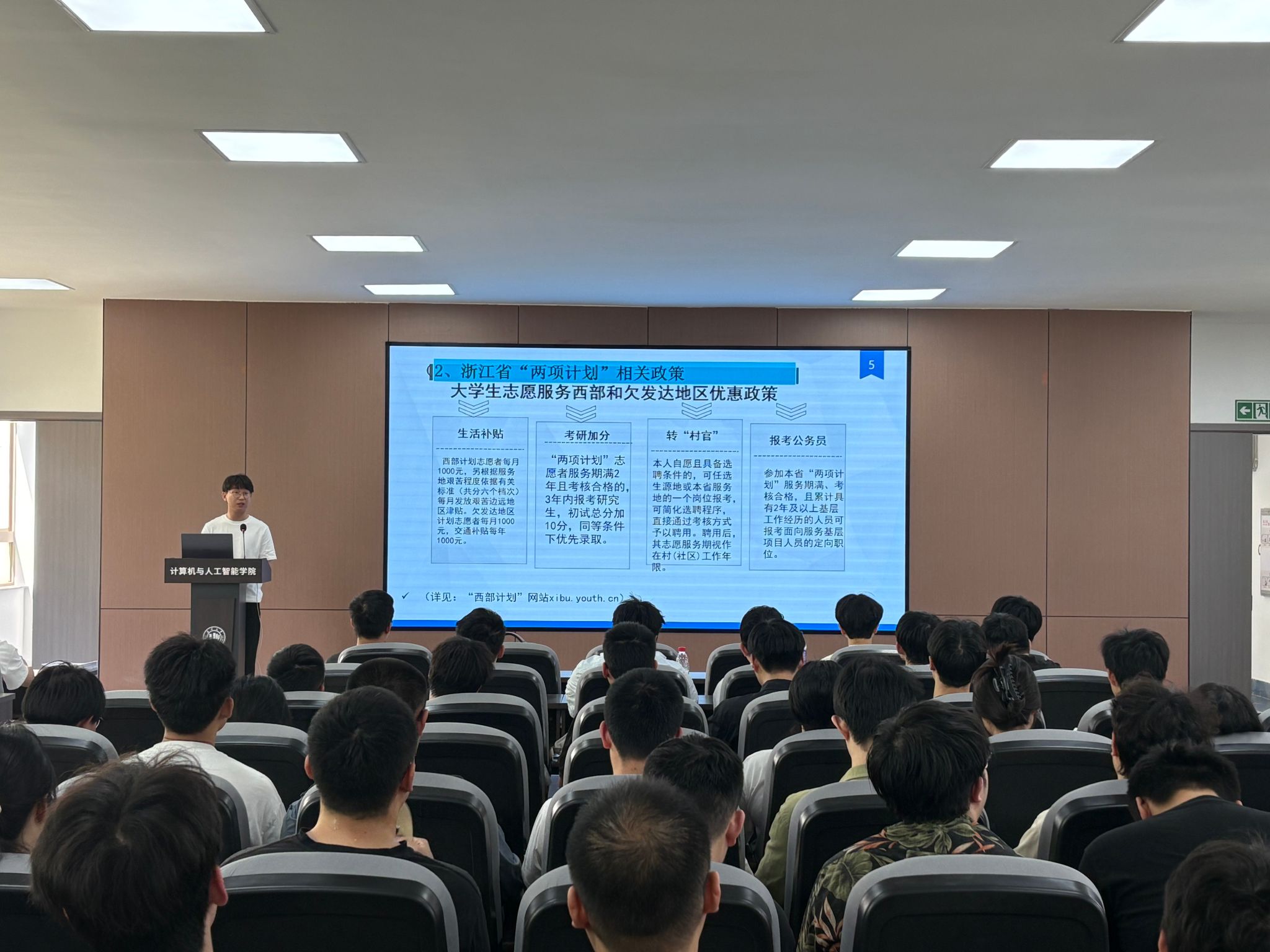 会议伊始,黄敏侠老师围绕就业相关工作安排和反诈宣传教育展开讲解。黄老师就离校手续办理、助学贷款还款事项进行详细讲解,叮嘱同学们要以诚信为本,同时,黄老师还宣传解读了国家及浙江省最新就业支持政策,包括西部计划、应征入伍、基层就业补贴、创业政策等内容,并告知毕业生如何签署三方协议、获取成绩单等就业材料。此外,黄老师重点提醒毕业生警惕求职中的十大高发诈骗类型,通过“反诈灵魂8问”强化学生防骗意识,强调务必保护个人信息与财产安全。