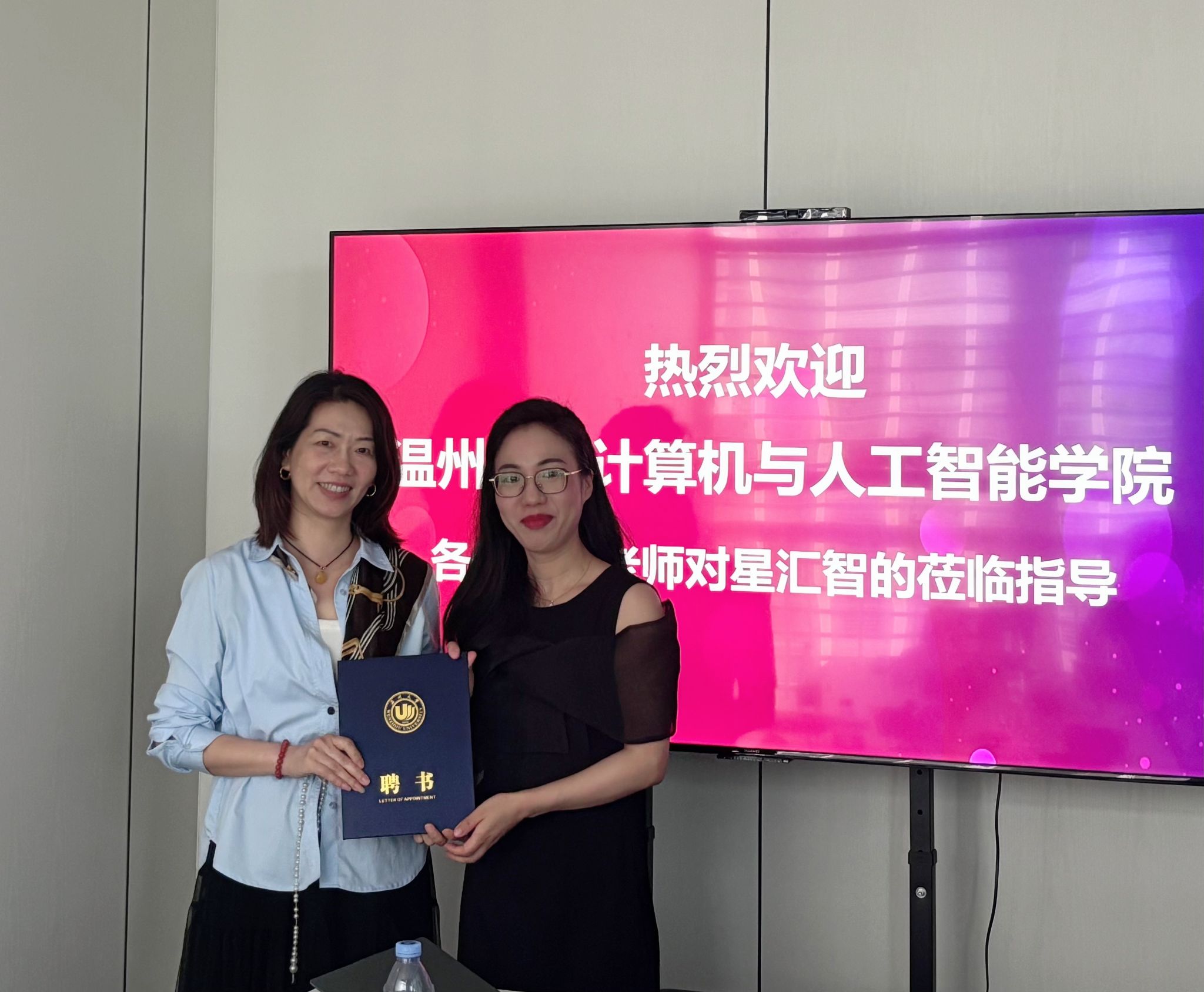 彭书记详细介绍学院发展、专业设置、学科建设与人才培养体系,诚邀校友返校开展经验分享,构建校友反哺育人机制,并为优秀校友王美丽颁发“学院校友会理事”聘书。彭书记指出,“在AI产业浪潮下,更应重视人才的综合素质、技术能力和自主学习能力,期待和企业实现双向赋能、共同发展。”校企双方围绕创新实践课程、人才培养推荐等方面展开深入研讨。