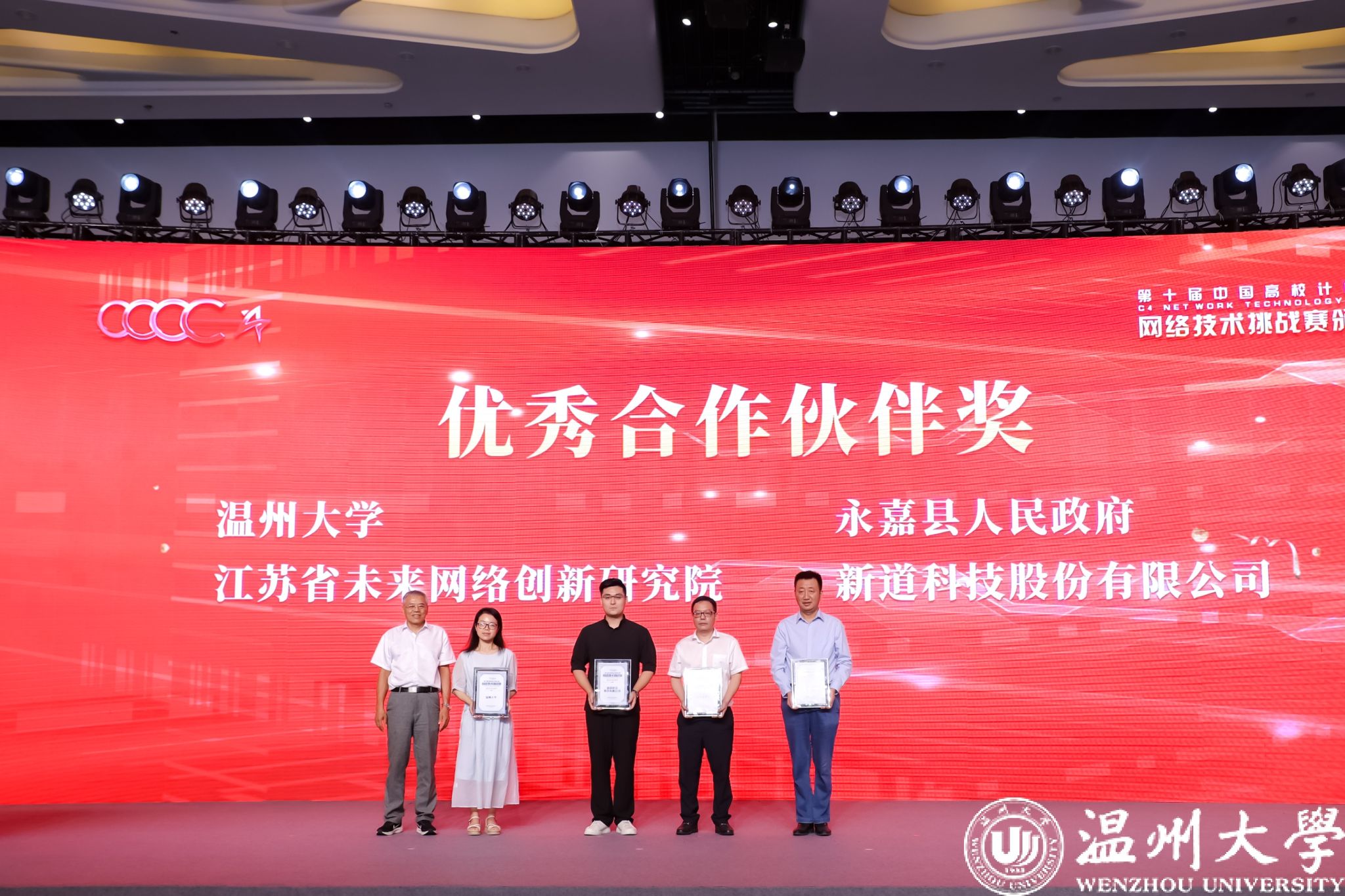 “C4-网络技术挑战赛”自2017年起一直由组委会主任单位温州大学承办。本年度,共同承办单位包括了温州永嘉县人民政府、江苏省未来网络创新研究院、用友新道科技有限公司,同时得到了CCF网络与数据通信专业委员会、CCF互联网专业委员会、中国信息通信研究院和温州理工学院等协办单位的支持。