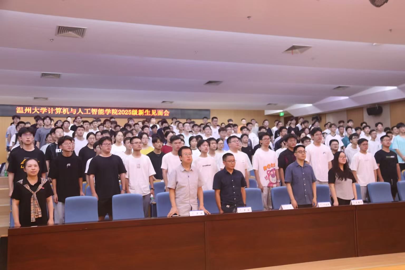 学院教工代表黄长城教授从中国历史发展出发,向同学们阐述了中华民族刻苦钻研的坚强意志,寄语98堂 2025级新生要树立报国之情、强国之志,在这座温润之城、山水之洲保持自信却不自傲的态度,潜心钻研、刻苦求学,在竞赛中提高技能、在实践中锤炼本领,向温州名人大师学习,让自己成长为能够引领人工智能时代发展的创新型人才。