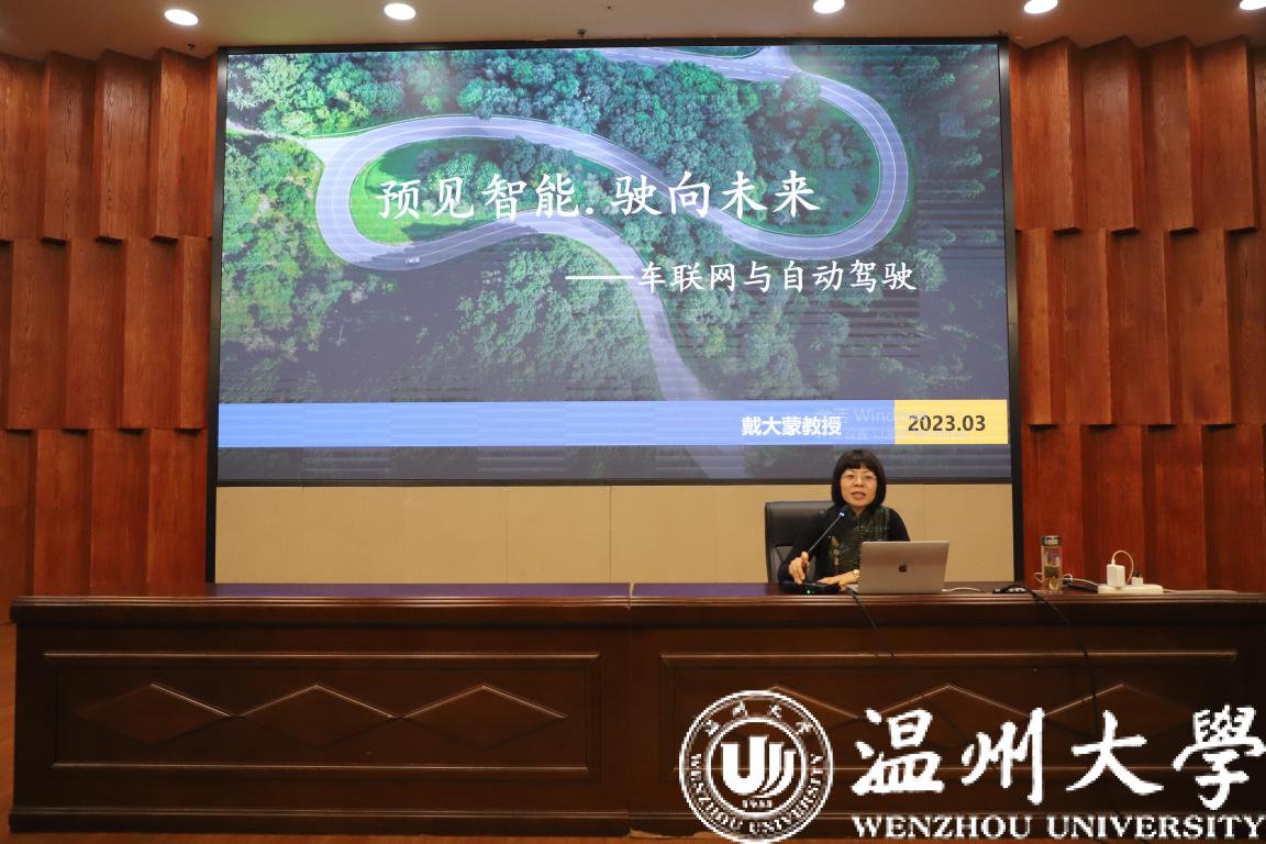 2023年3月30日,AI创视界论坛之“预见智能,驶向未来:车联网与自动驾驶”主题科创讲座在岩松堂雁山厅顺利举行,本次讲座由入选温州市“551第一层次”人才项目的戴大蒙教授主讲。