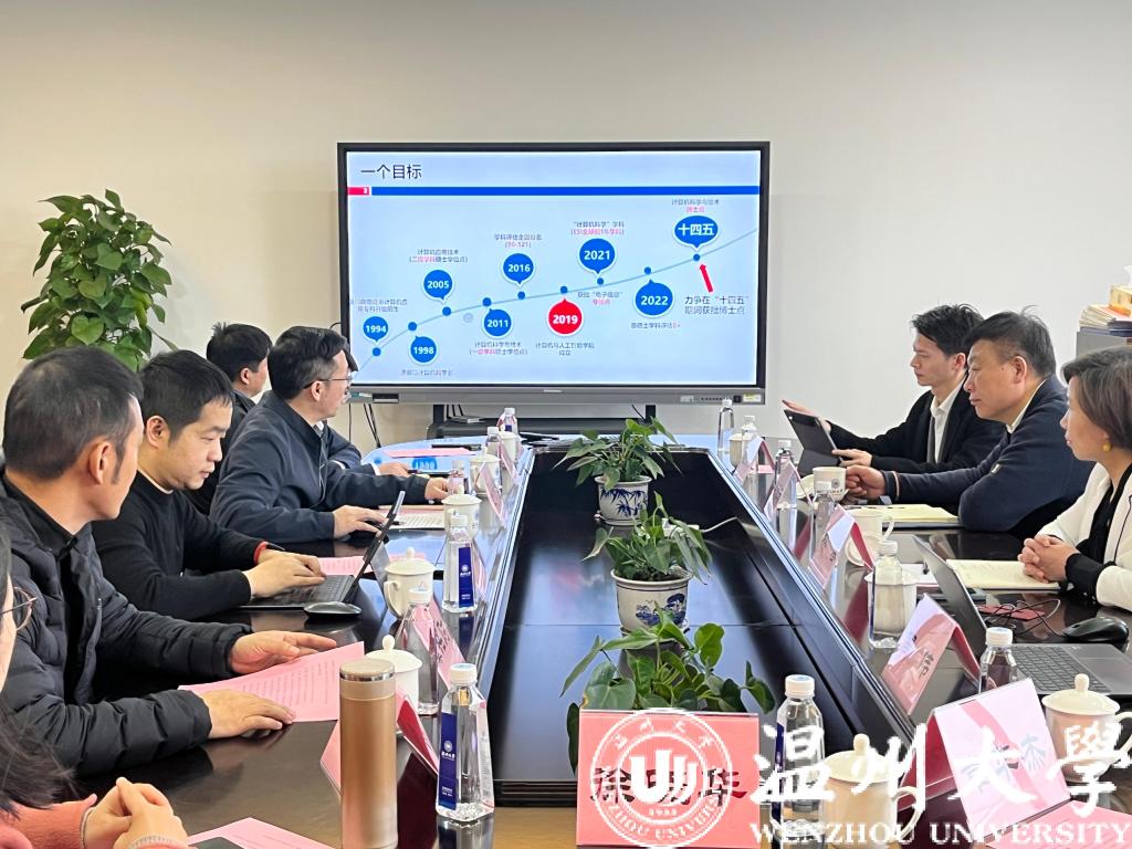 2023年3月30日下午,温州市教育局教育技术中心主任侯元东等一行来学院调研开展智慧教育。学院党委书记全力、副院长黄辉及学院相关老师出席座谈会。