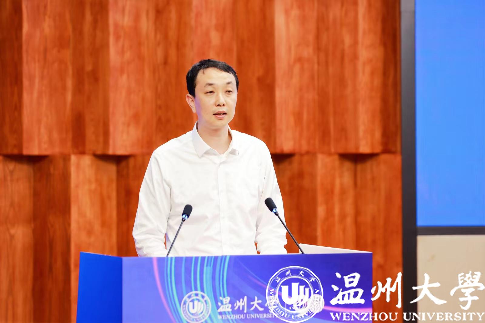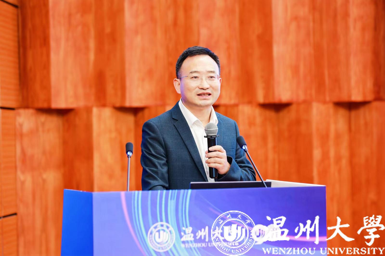 校党委书记张健致辞。他代表温州大学对远道而来的专家学者、各位来宾表示热烈欢迎。他表示,本次会议可以用三个关键词概括。首先是传承与创新。在人工智能时代当下,我们应该传承“求学问是、敢为人先”的校训精神,敢于冲破时代的挑战,探索发展新路径,继往开来,谱写华章。其次是速度与激情,在不断变革的数字经济时代中,温州大学的未来发展离不开科技创新的技术支撑,今年恰逢温州大学90周年校庆,回望过去,温州大学硕果累累,未来学校将加速布局元宇宙与AI领域,实现元宇宙与人工智能的双向奔赴。最后是光荣与梦想。温州大学将充分利用人才和平台优势,在学科交叉、人才培养、科学研究等方面协同创新,进一步拓宽与政府、社会、高校、研究所、企业等机构合作,助力温州大学发展,实现产业升级和高质量发展。