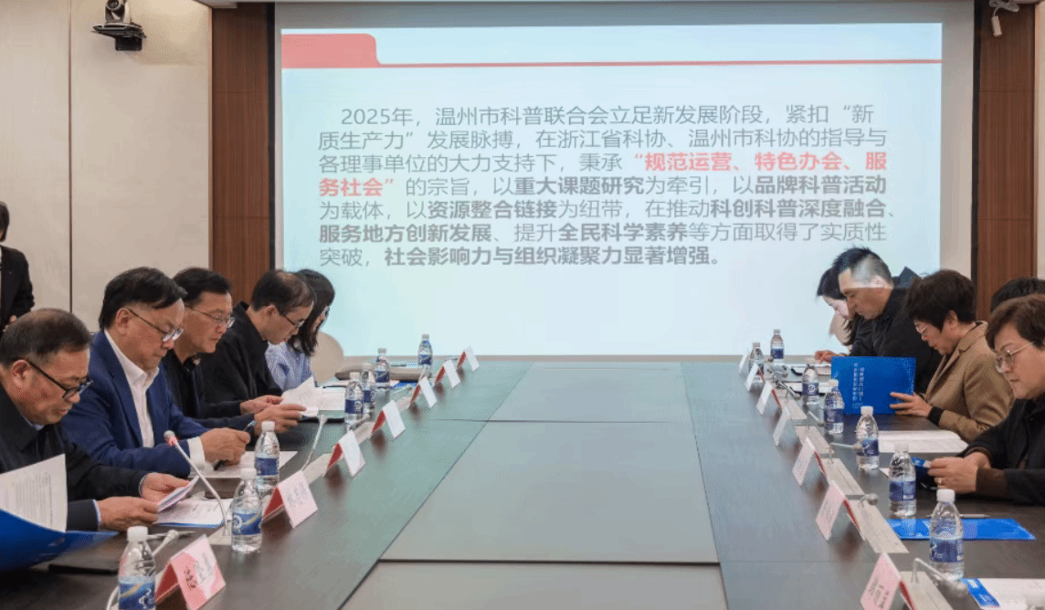 2025年12月17日,温州市科普联合会2025年度理事会在瓯越院士之家顺利召开。联合会理事长瞿佳、监事长林卫平、执行副理事长林志保,与来自各理事单位的代表、个人理事、特邀专家等30余人齐聚一堂,共商发展大计,擘画未来蓝图。会议由执行副理事长林志保主持。