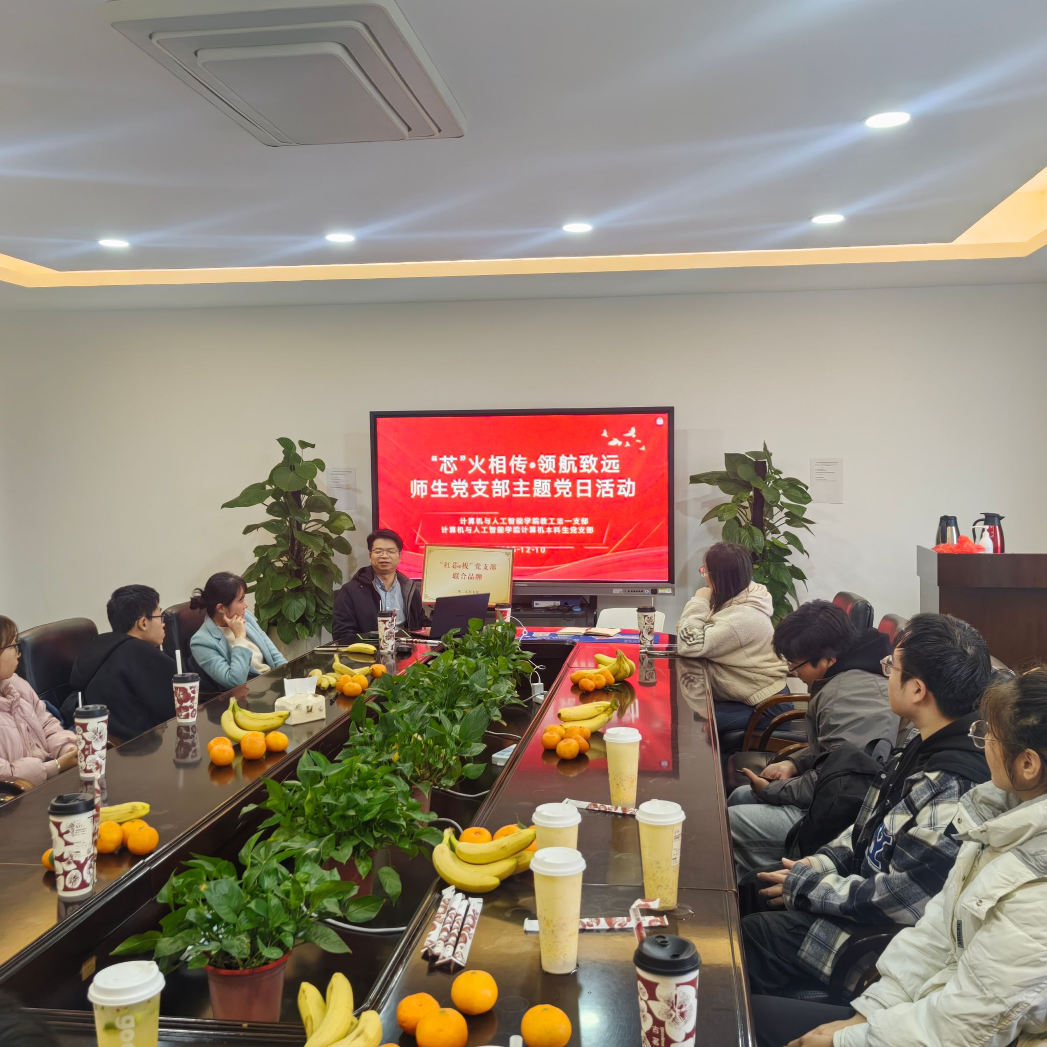 为进一步增进计算机系师生间的交流互动,营造便捷高效的学习生活环境,12月10日下午,98堂 计算机党支部与计算机本科生第一党支部在98堂 南5B318会议室,共同举办了“芯火相传·领航致远——大学生活我想说”主题沙龙活动。活动由计算机教工支部书记陈伟斌老师主持,支部纪检委员胡倩老师、组织委员康佳源老师、宣传委员胡孙贵老师出席,参加活动的还有25级、24级部分本科生,以及高年级党员代表刘彦熙、程如新、王晨曦、郑雯瀚、汪炜杰。